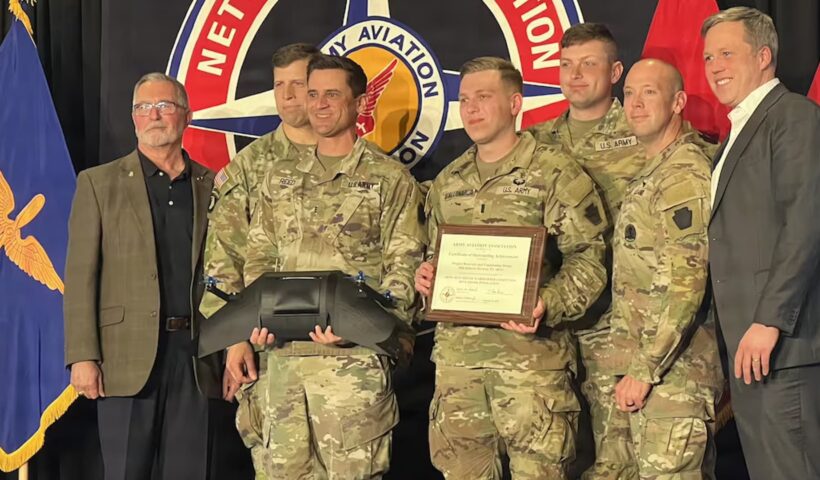 Premio a la mejor innovación en la primera competencia de mejor combatiente con drones del US Army en Huntsville, Alabama. Personal de la 28 División…