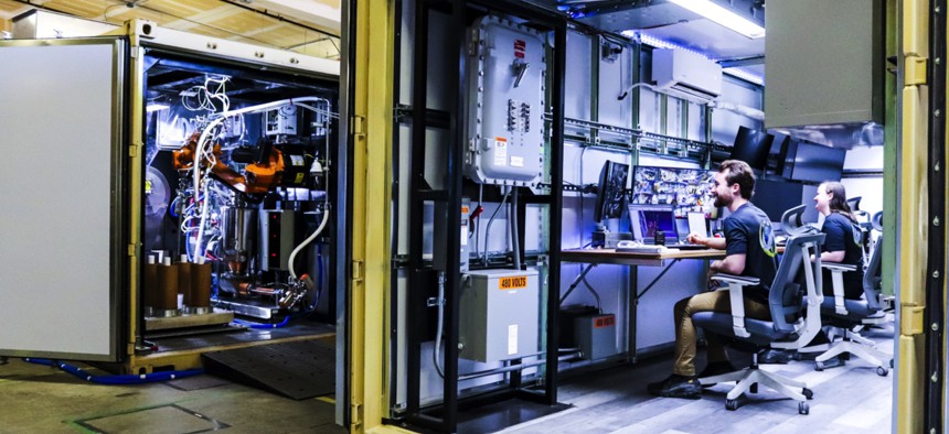 The company began work on the rocket factory-in-a-box concept for the Air Force last year. It can currently produce hundreds of pounds of inert solid rocket fuel, Hundley said.