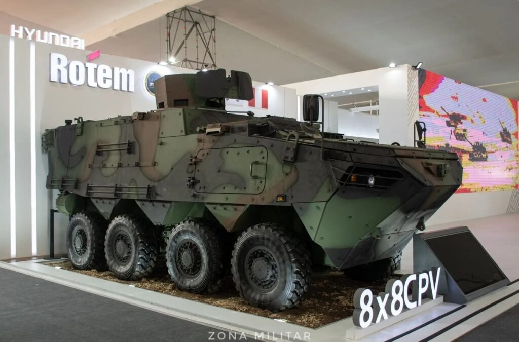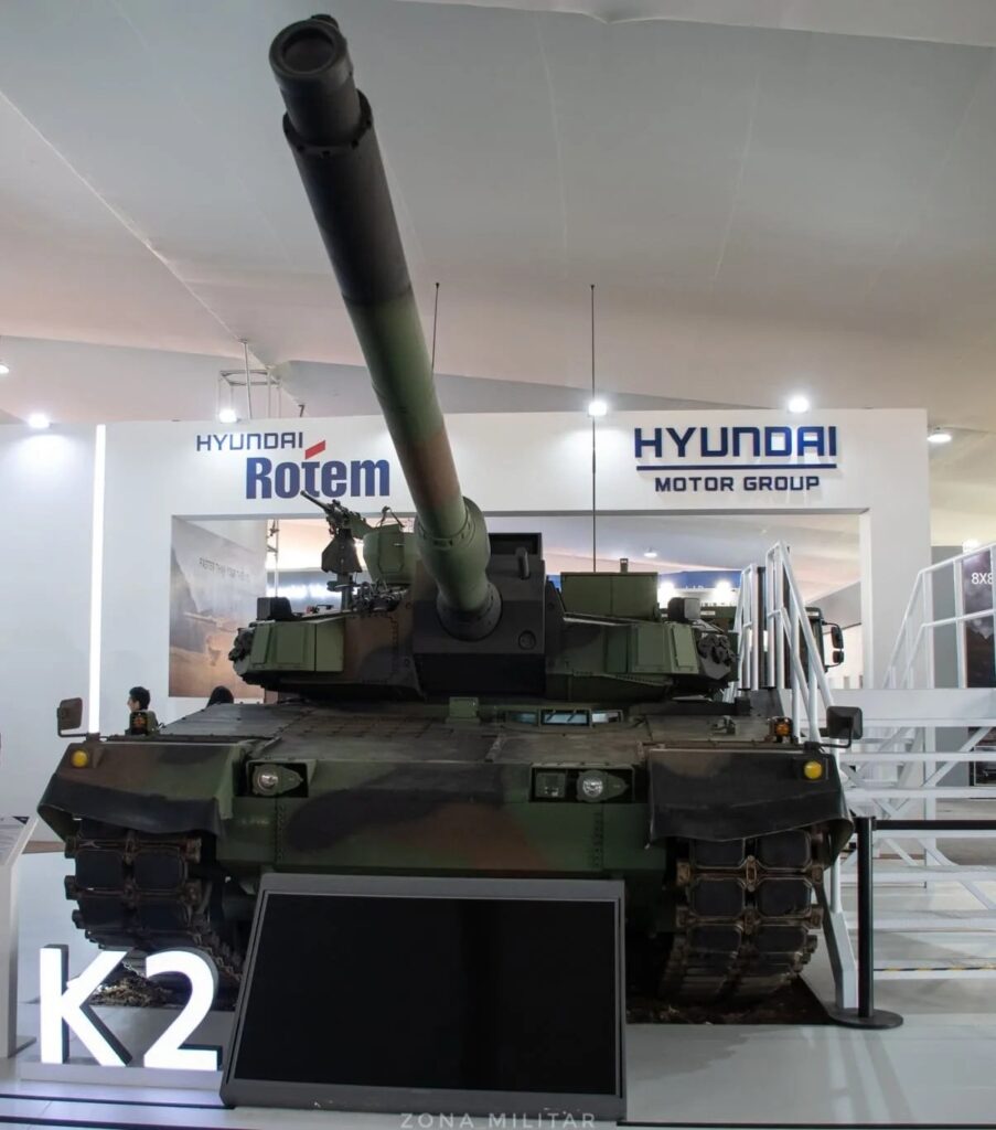 Ademas de los blindados 8×8, el Ejército del Perú ha seleccionado al tanque K2 Black Panther como su futuro tanque de combate, en reemplazo de los veteranos T-55. La decisión fue anunciada en mayo de 2024, tras un proceso de evaluación técnica y demostraciones que incluyeron posteriormente la exhibición de ambos modelos en el Salón Internacional de Tecnología para la Defensa y Prevención de Desastres (SITDEF 2025), realizado en Lima. Durante la feria, Hyundai Rotem presentó el K2 y el K808 ante autoridades y especialistas del sector, en una clara señal del compromiso surcoreano con el fortalecimiento de las capacidades peruanas.