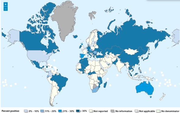 Globally, influenza activity has increased since October 2025 with influenza A viruses predominant among the viruses detected globally.