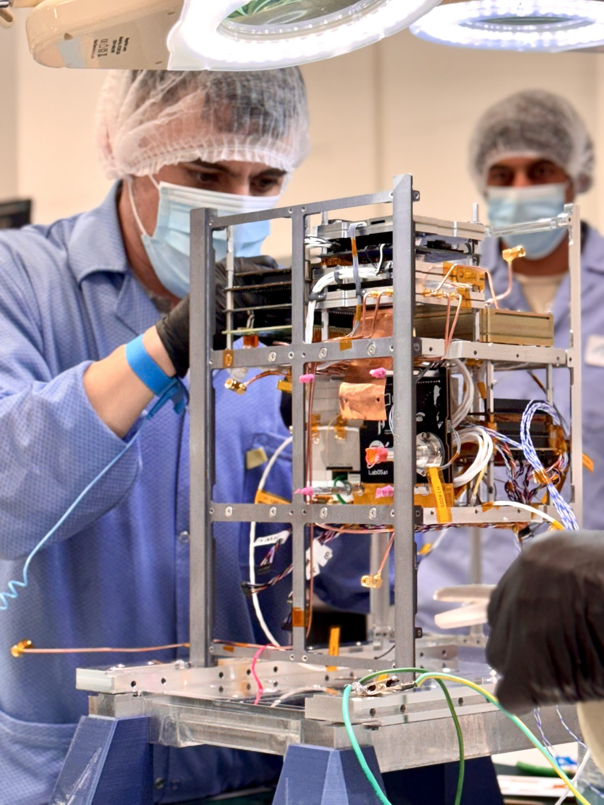El diseño de la plataforma del satélite estuvo en manos de la Facultad de Ingeniería de la UNLP. El grupo del Centro Tecnológico Aeroespacial (CTA) fabricó la estructura y se encargó de que todos los subsistemas se vinculen correctamente, y el grupo de Sistemas Electrónicos de Navegación y Telecomunicaciones (SENyT) desarrolló la computadora de a bordo, el sistema de comunicaciones y un receptor de GPS (la segunda carga útil). “Lo más interesante fue la experiencia de trabajar con gente de alto nivel y aprender de ellos, mejorando nuestras capacidades para futuros proyectos. También la oportunidad de haber podido viajar y estar en las instalaciones de la NASA”, cuenta Aldana Guilera, estudiante de Ingeniería Aeroespacial de la UNLP e integrante del CTA.