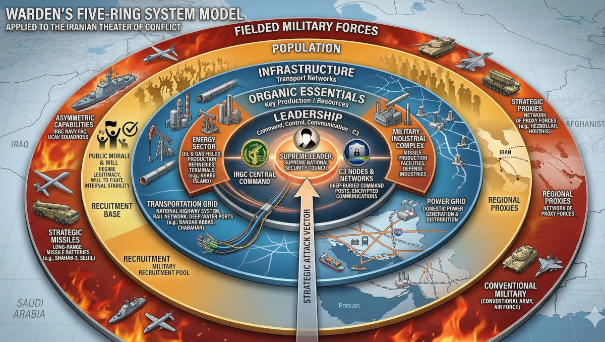 The war in Iran began with one of the most effective decapitation strikes in history, but while it may have caused temporary paralysis, it neither brought down the regime nor brought victory. This is because while Warden’s five ring model may apply, the importance of the rings changes radically based on the nature of the state and the system. Bringing down a robust regime like Iran is still possible but requires a radically different approach from defeating a fragile one.