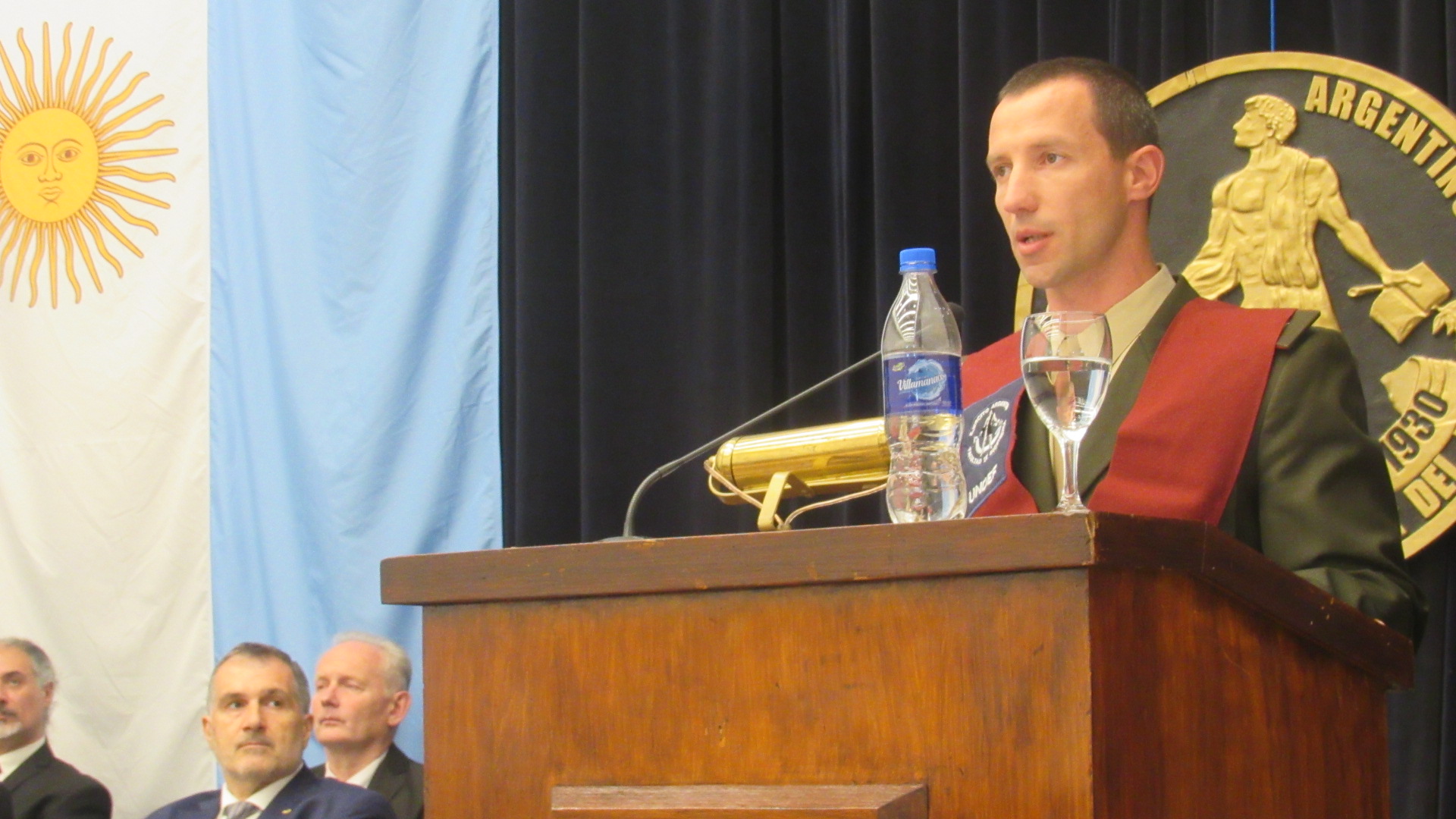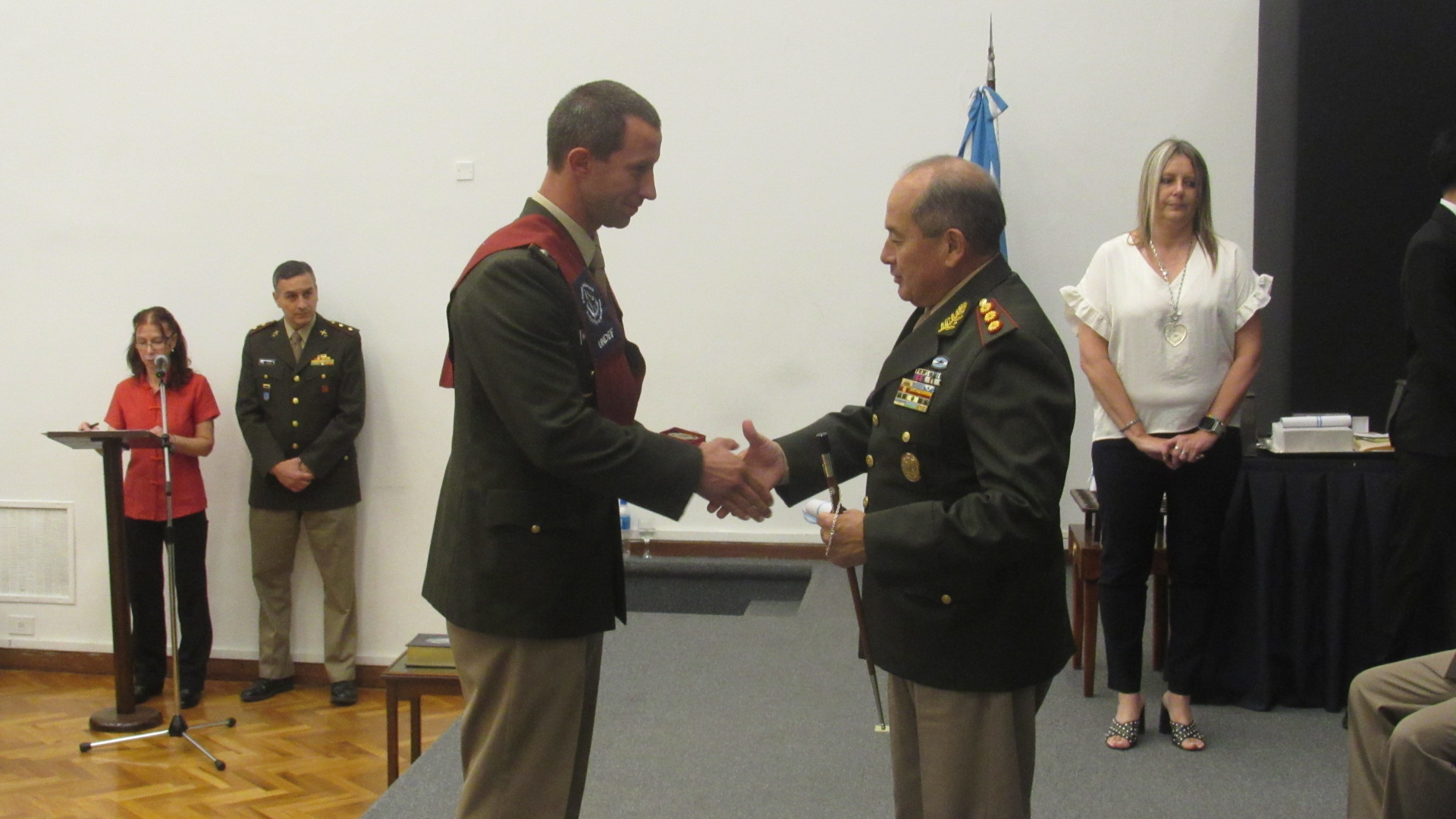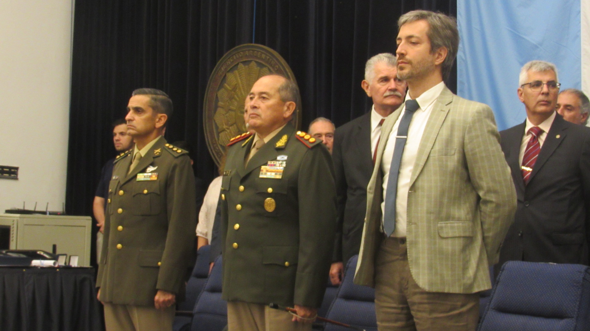 La ceremonia fue presidida por el director general de Educación del Ejército, general de división Jorge Alberto Puebla, acompañado por el rector de la Universidad de la Defensa Nacional, doctor Julio César Spota, y el decano de la Facultad, coronel Alberto Ricardo Nadale.