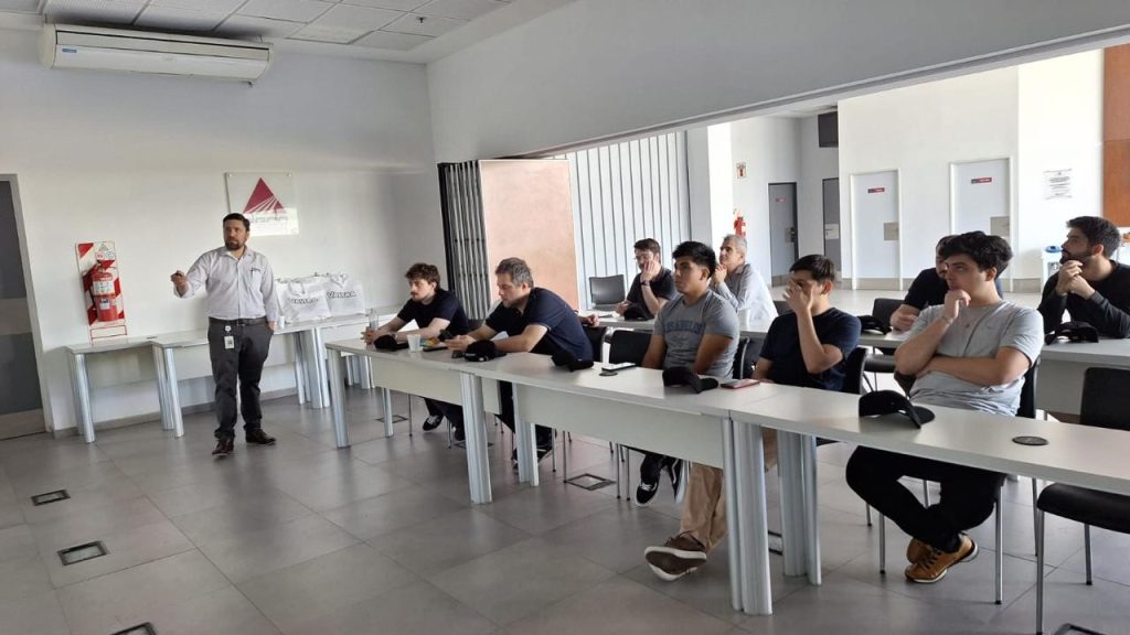 La jornada comenzó en AGCO Academy, donde fueron recibidos por el gerente de ingeniería de producto, Ing. Barbotto, junto a integrantes del área de marketing. Allí participaron de una presentación institucional en la que se abordaron la historia del grupo, sus principales líneas de negocio, la diversidad de productos y las marcas que la compañía desarrolla a nivel local e internacional. Asimismo, se profundizó en la composición de las unidades fabricadas en la planta y en los desafíos asociados al proceso de nacionalización de componentes.